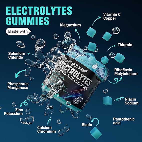 • Unique Blend of Electrolytes: Our Electrolyte Soft Gummies contain a powerful combination of six essential electrolytes, including sodium, potassium, calcium, magnesium, chloride, and phosphorus. These electrolytes are crucial for maintaining proper hydration, supporting muscle function, and overall bodily functions.